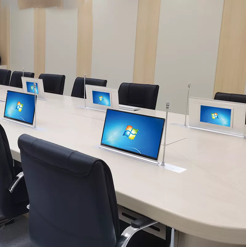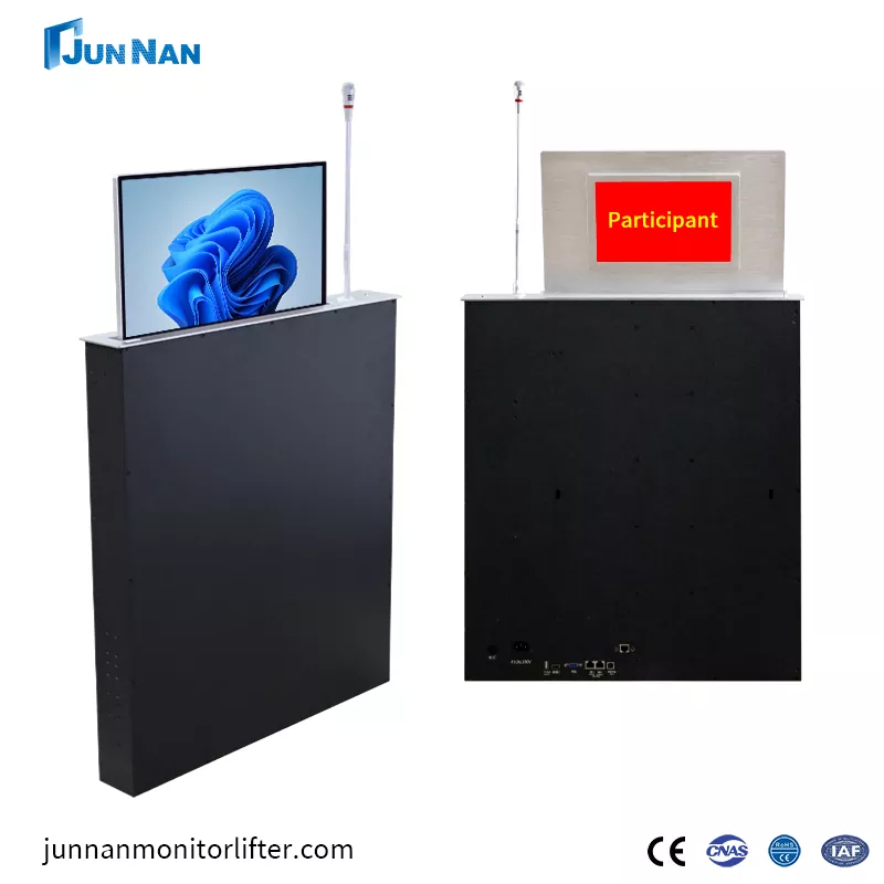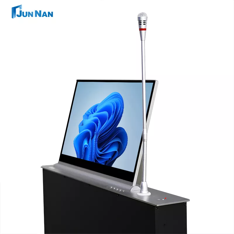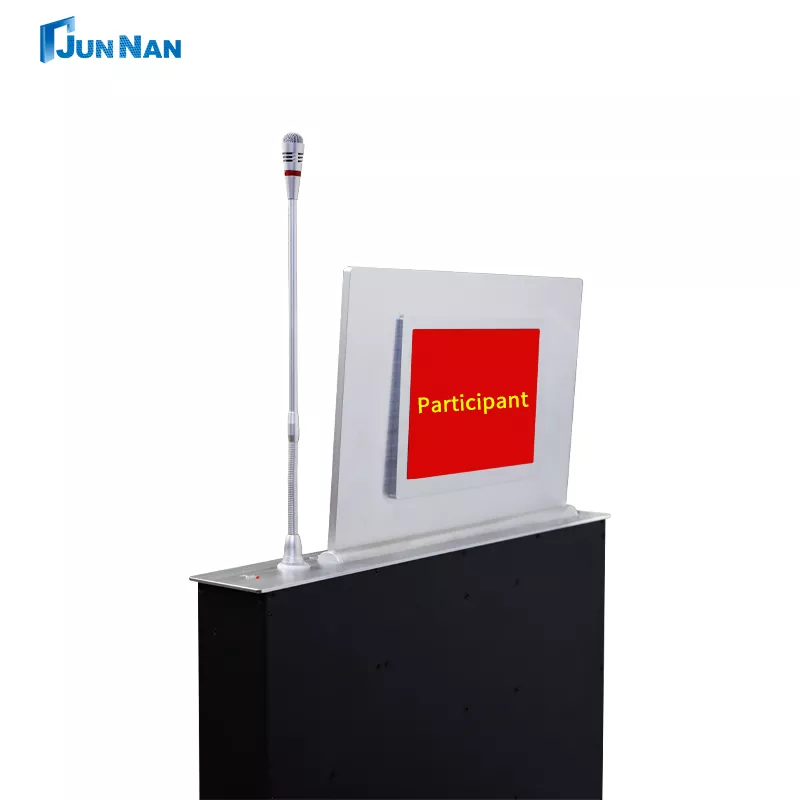 Guangzhou Junnan er en profesjonell ChinaConference bord løfteskjermprodusent og Kina Conference bord løfteskjermleverandør. Løfteskjermen for konferansebord brukes hovedsakelig i konferansebord for seniorledere, innebygd berøringsfunksjon med høy ytelse, konfigurering av mikrofonen, konfigurasjon av bakskjerm, én nøkkelløft, justering foran og bak, utstyrt med anti-klemmefunksjon, trygg og bekymringsfull- gratis, skjult innebygd installasjon er veldig vakker.