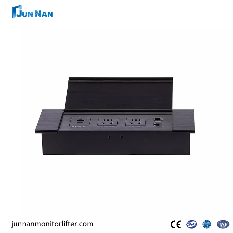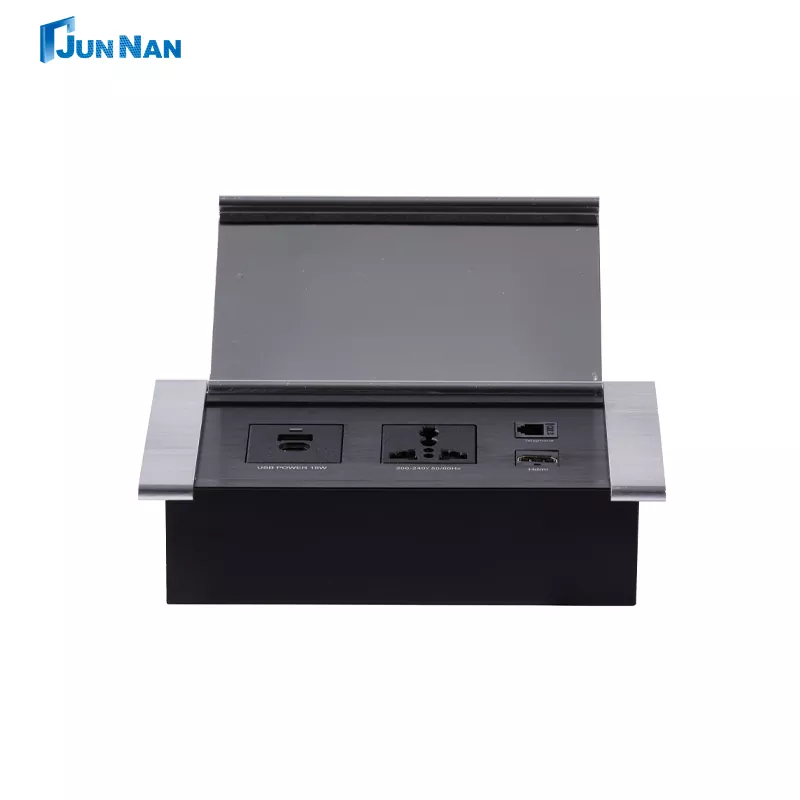 Pop-up skrivebordsuttak sparer plassPop-up-design gjør at den kan skjules inne på skrivebordet eller veggen når den ikke er i bruk, tar ingen ekstra plass og holder miljøet ryddig. Den spretter opp og trekkes tilbake ved hjelp av en intern mekanisk struktur. Når det er nødvendig, trykker du på den aktuelle knappen eller utløserenheten og stikkontakten kommer opp; etter bruk, bruk den igjen for å få den til å trekke seg inn og skjule. Multifunksjonell lading Utstyrt med en USB-port, kan den lade mobiltelefoner, nettbrett og andre elektroniske enheter direkte uten behov for en ekstra lader. Vedta brannsikkert materiale av høy kvalitet og overbelastningsbeskyttelse, som effektivt forhindrer sikkerhetsfarer forårsaket av kortslutning og overbelastning. For eksempel, når strømmen overstiger uttakets belastningsgrense, slår stikkontakten automatisk av strømmen for å beskytte tilkoblede enheter og brukere. Forbedrede sikkerhetspop-up-stikkontakter reduserer risikoen for at barn til en viss grad tar på jekken ved et uhell. Noen produkter har overbelastningsbeskyttelse og andre sikkerhetsfunksjoner. De kan kjøpes i engros eller privat tilpasset kunder. I tillegg har våre Junan-enheter en rekke sertifikater, som CCC, CE-sertifisering, ROHS, ISO-sertifisering flervalgssertifikat. Våre produkter er trygge og høy kvalitet, med eksportkvalifisering, fabrikk direkte salg, gunstig pris, egen fabrikk, og har vært i drift i mange år.