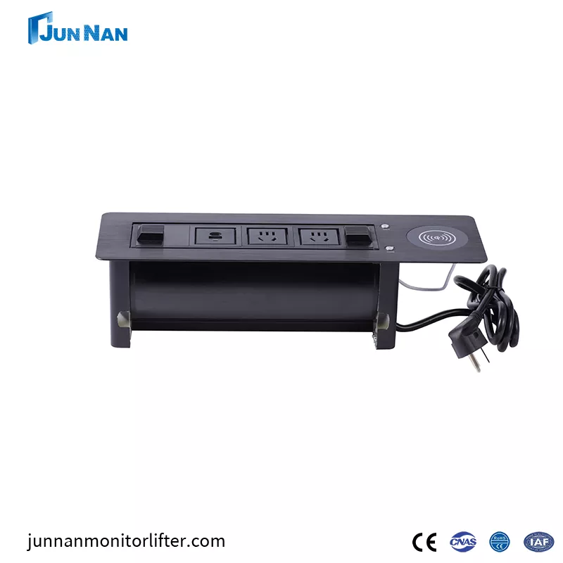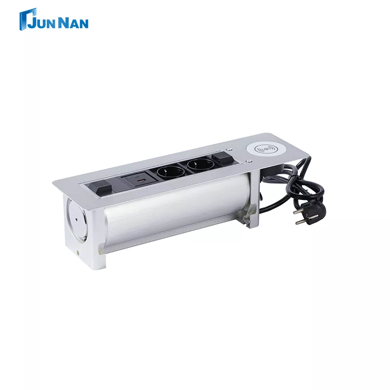 JUNNAN USB-kontakt støtter ett-trykks vippepanelfunksjon, og kontakten skjuler skrivebordet uten å ta opp plass. Våre avanserte USB-uttak er den nyeste typen stikkontakter, enkle å vedlikeholde, kan kjøpes i engros eller tilpasses kunder. Alt-i-ett elektrisk flip-uttak + trådløs lading er en moderne stikkontaktdesign som kombinerer elektrisk flip-teknologi med trådløse lademuligheter. I tillegg har våre junnan-enheter mange sertifikater, som CCC, CE-sertifisering, ROHS, ISO-sertifisering, etc. Våre produkter er trygge og av høy kvalitet, med eksportkvalifisering, direktesalg fra fabrikken, gunstig pris, egen fabrikk, og har vært i drift i mange år.
