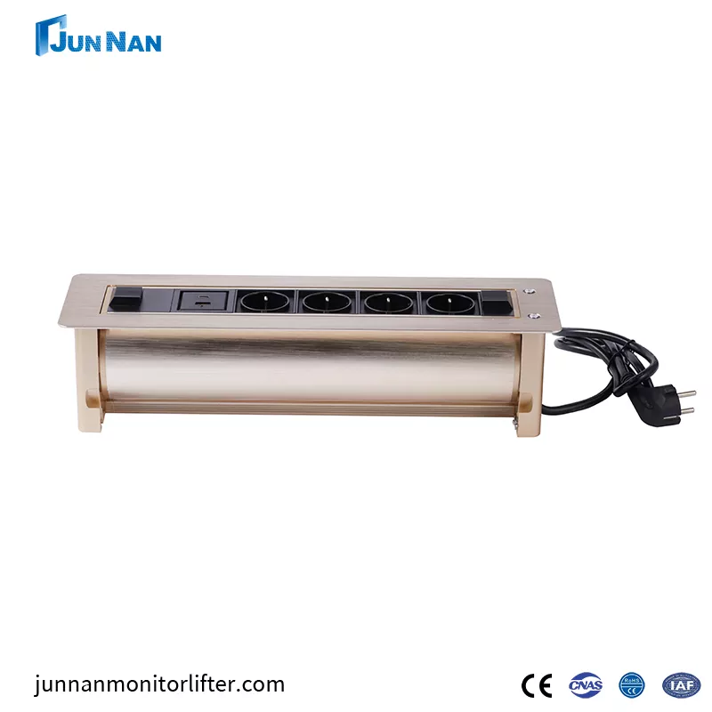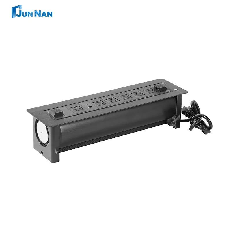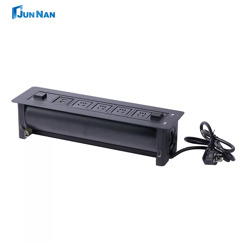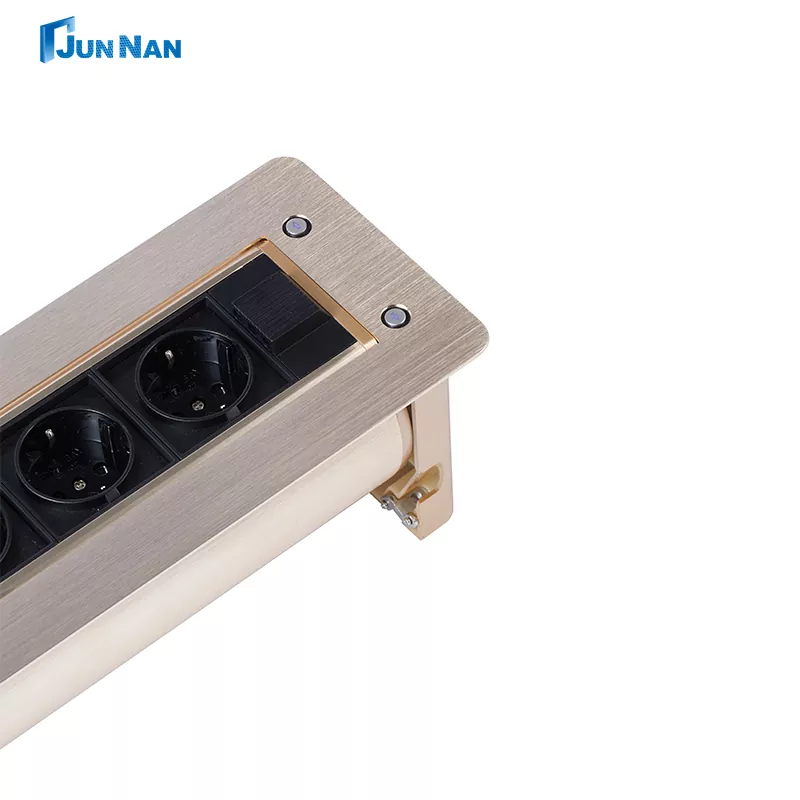 JUNNAN Skjult skrivebord Plug Up Pop Socket Conference Med innfelt Power Ba ett-trykks flip-funksjonspanel, flere kontakter synlige for enkel tilgang til strøm, og stikkontakten skjuler skrivebordet uten å ta opp plass. Våre avanserte stikkontakter er den nyeste typen stikkontakter, enkle å vedlikeholde, kan kjøpes i engros eller tilpasses kunder. Junnan-enhetene våre har mange sertifikater, som CCC, CE-sertifisering, ROHS, ISO-sertifisering, etc. Våre produkter er trygge og høy kvalitet, med eksportkvalifisering, fabrikk direkte salg, gunstig pris, egen fabrikk, og har vært i virksomhet i mange år.