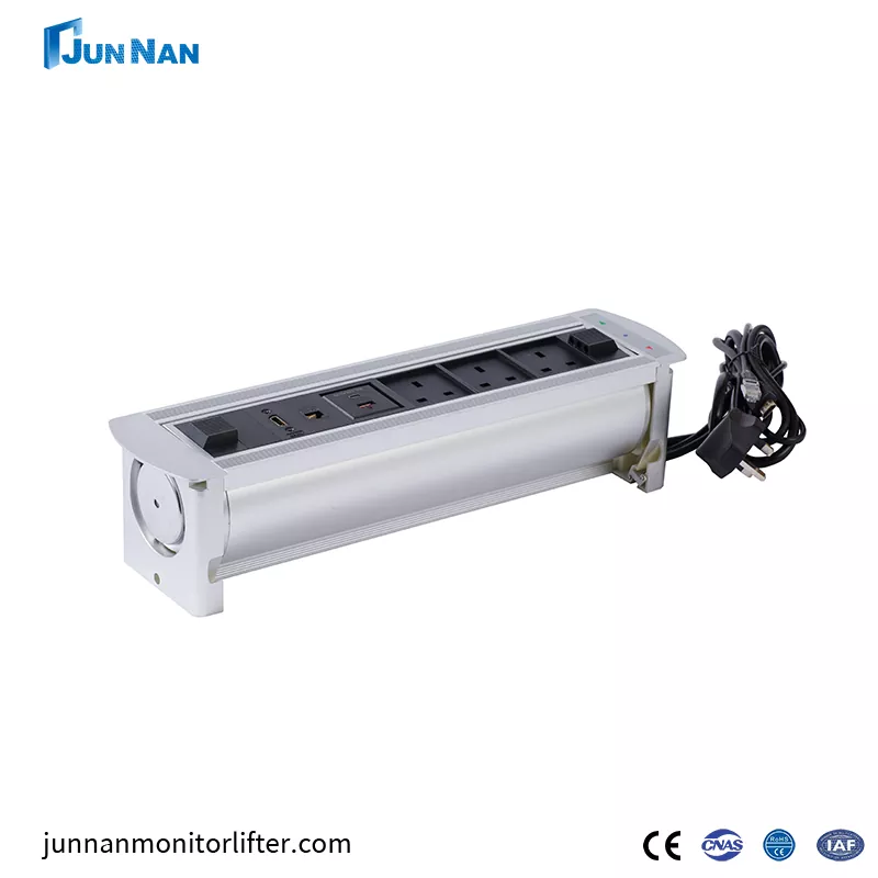 JUNNAN Office Desk Embedded Pop Up Desktop Socket støtter ett-trykks flip-funksjonspanel, flere kontakter synlige for enkel tilgang til strøm, og stikkontakten skjuler skrivebordet uten å ta opp plass. avanserte pop up-stasjonære stikkontakter er den nyeste typen stikkontakter, enkle å vedlikeholde, kan kjøpes i engros eller tilpasses kunder. I tillegg har våre Junnan-enheter mange sertifikater, som CCC, CE-sertifisering, ROHS, ISO-sertifisering osv.. Våre produkter er trygge og av høy kvalitet, med eksportkvalifisering, fabrikk direkte salg, gunstig pris, egen fabrikk, og har vært i virksomhet i mange år.