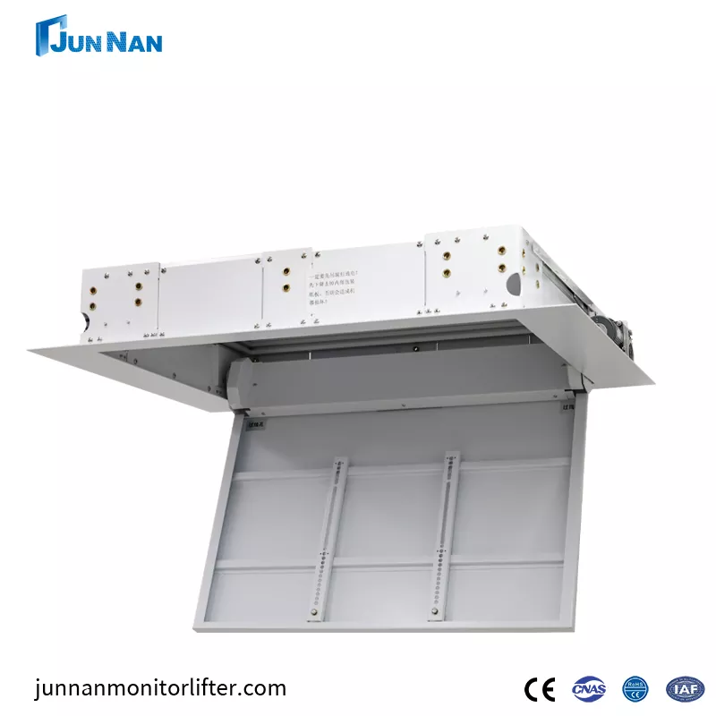 Junnan TV Ceiling Lift intelligent posisjoneringsfjernkontroll/senterkontroll/håndkontroll, enkel og praktisk å betjene. løfting og justeringHøy grad av frihet og kontrollerbarhet, hengerens løfte- og senkeavstand kan justeres fritt. Stabil motorstyring, forskjellige kontroller og praktisk betjening Innebygd lav støy, stabil og stille drift Skjult installasjon kan skjules i veggen, stilig, vakker Og plassbesparende.
